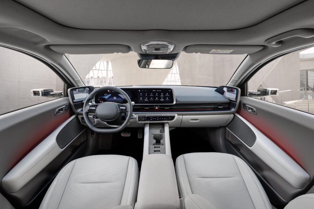 O interior, como seria de esperar apresenta notórias semelhanças com o IONIQ 5. Destaque para as laterais das portas que são novas e completamente diferentes das do seu “irmão mais novo” e que aumentam a sensação de espaço a bordo. Mais uma vez, como é esperado nestes automóveis mais amigos do ambiente, o interior deste IONIQ 6 recorre aos mais variados materiais reciclados